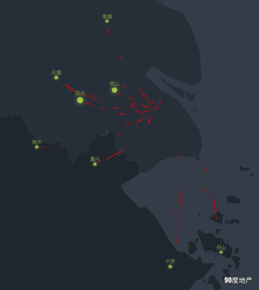 环沪沪漂购房意愿图,是根据沪漂对上海周边城市购房意愿绘出的迁徙图。从上图中我们可以看出,在沪购房者中苏州、昆山成为关注度最高的区域。