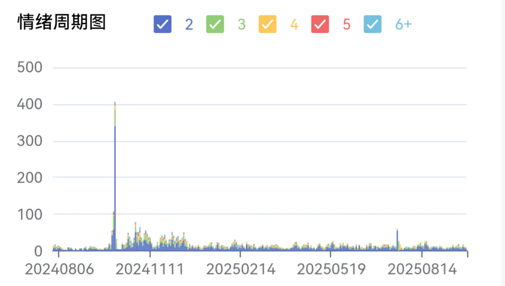此时的副本背景是,市场疯涨告一段落,而市场中多重主线并存,各路资金混杂时,迎来了混沌期(2024年10月中-2025年3月),但也是“妖股”频出期。