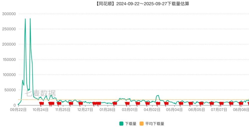 按上述逻辑去找,最佳选择是同花顺,毕竟当时其是所有应用付费类的总榜第一,且下载量是历史峰值的4倍,群众基础太大。