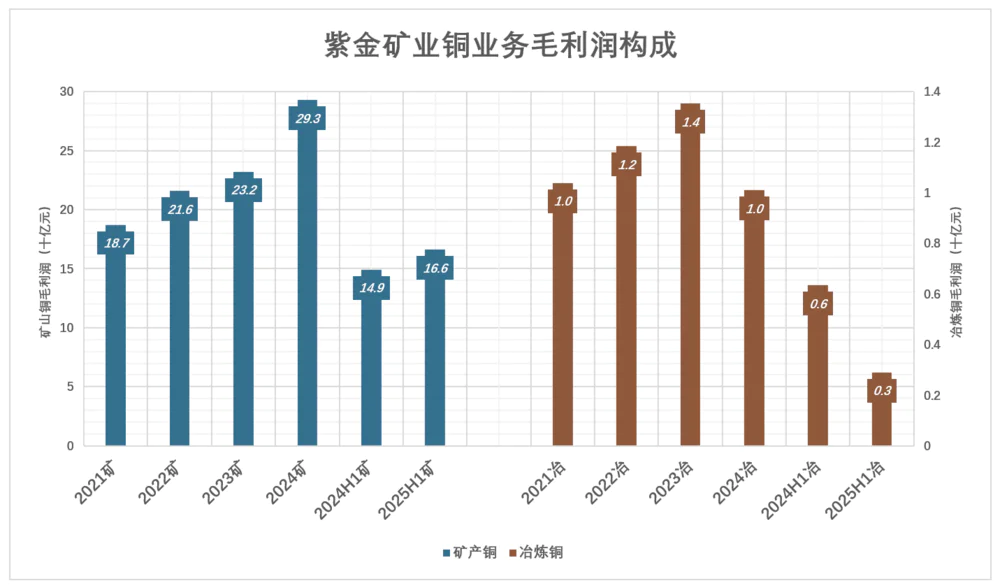 紫金矿业矿产铜毛利润率不输矿产黄金,冶炼铜则是“陪太子读书”: