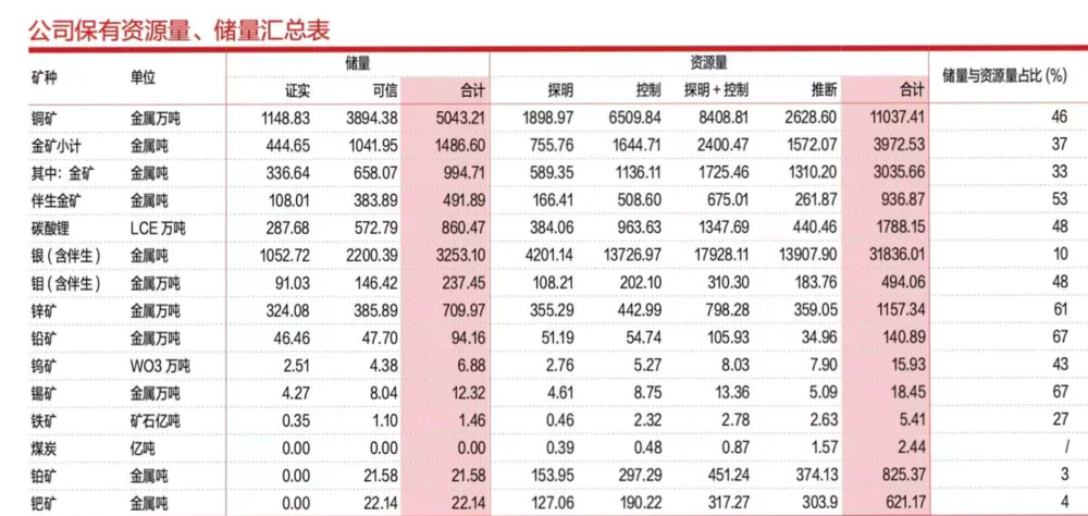 2025年H1.紫金矿业矿山产金38.2吨,新增金资源量88.8吨(含储量34.5吨);矿山产铜43.9万吨,新增铜资源204.9万吨(含储量132.2万吨)。