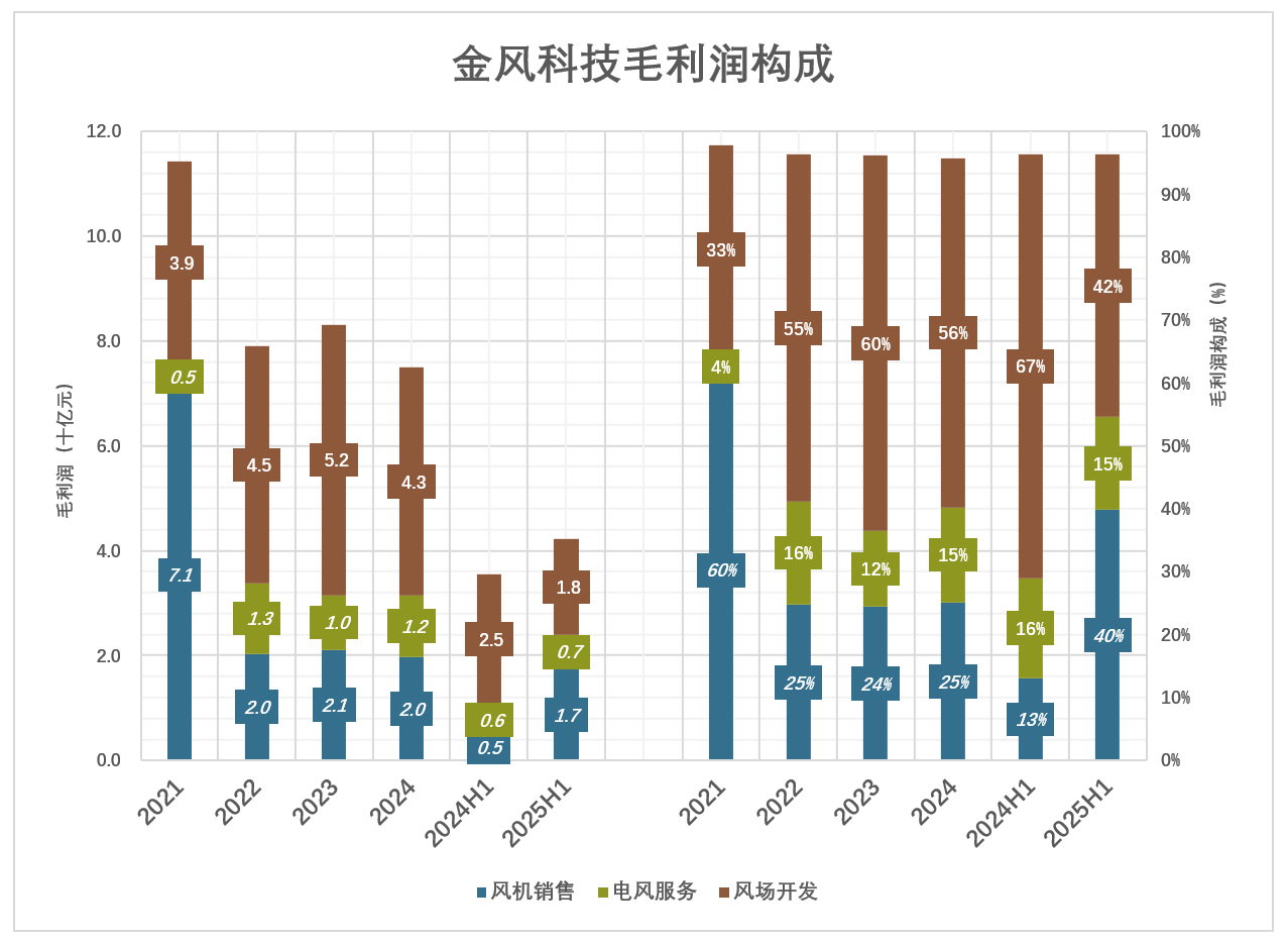 进入2025年,风机毛利润17亿、同比增长263%,占毛利润的比例回到40%。