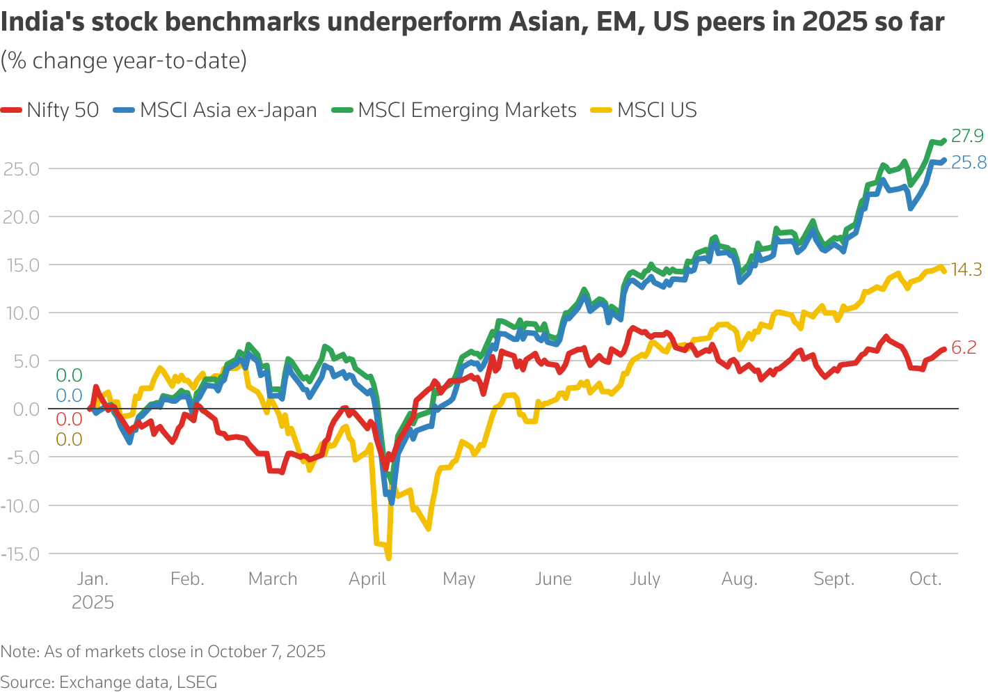 2025年以来,卢比兑美元已贬值近5%,这还是在同期美元指数下跌超过7%的基础上。这意味着,如果盈利10%,但卢比贬值7%,从美元视角看,风险收益比可能还不如美债。