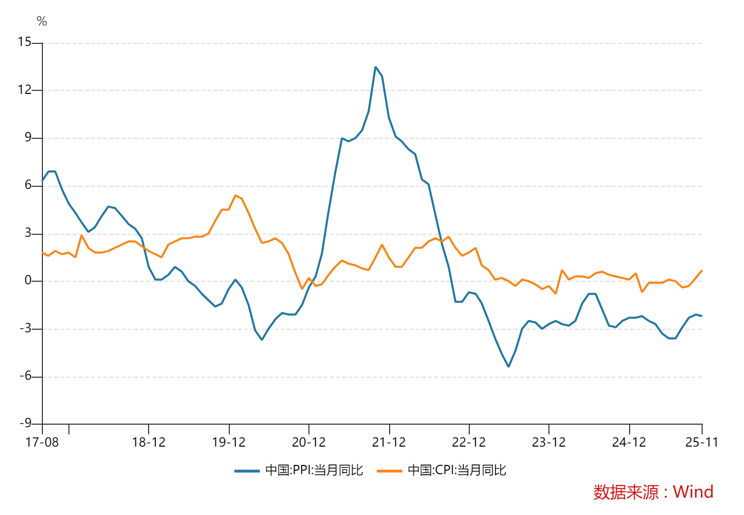 经过2022年到2025年这三年的调整,国内正从通缩向通胀过渡,但这不会是一种全面通胀,而更多是结构性的,主要发生在工业端,而非消费端。